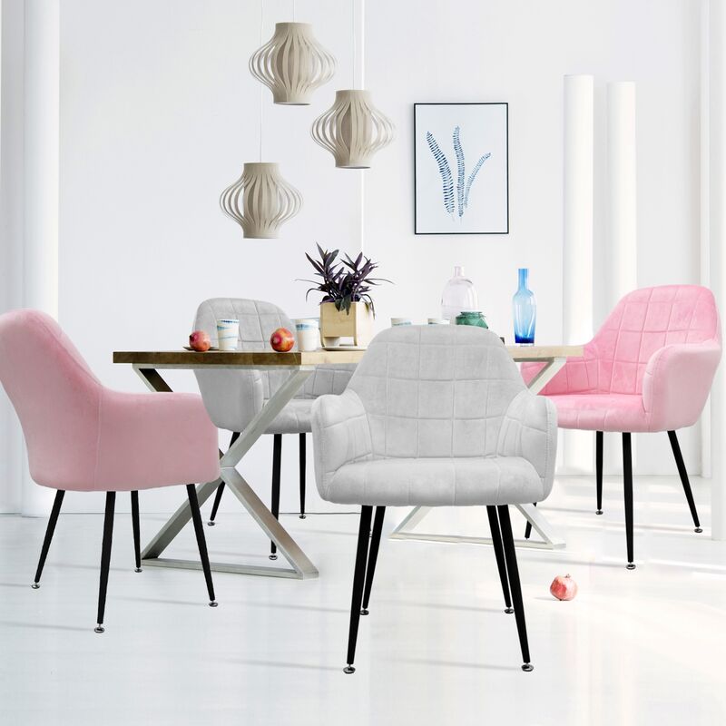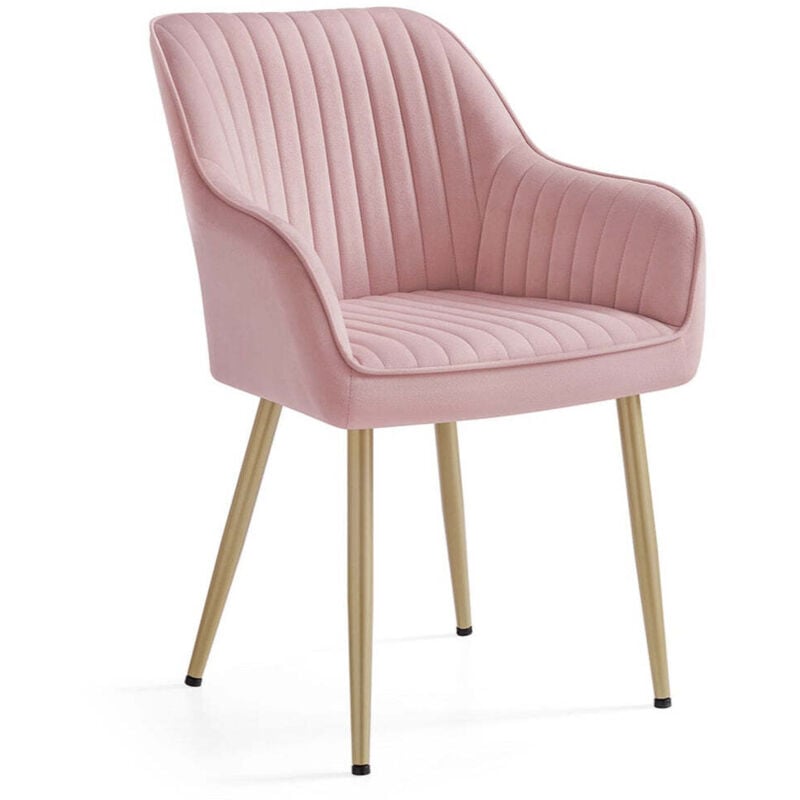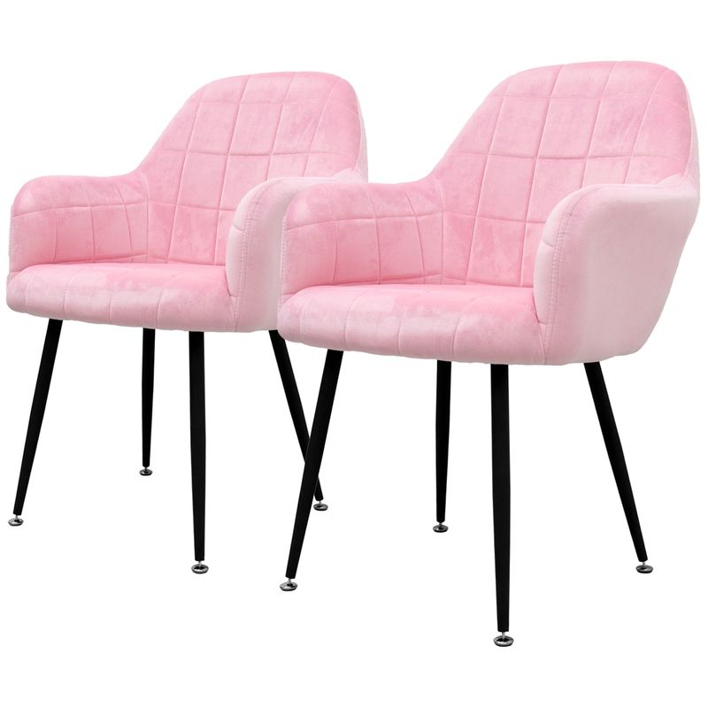 Lot de 2 Chaises de Salle à Manger Cuisine Salon Séjour - Rose - Assise Siège Rembourrée en Velours Structure en Métal Fauteuil Rétro avec Accoudoirs