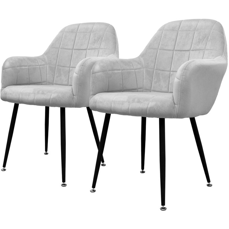 Lot de 2 Chaise de salle à manger, Fauteuil, Siège rembourrée, avec accoudoirs, pieds en métal, revêtement en velours, pour salon, chambre - Gris