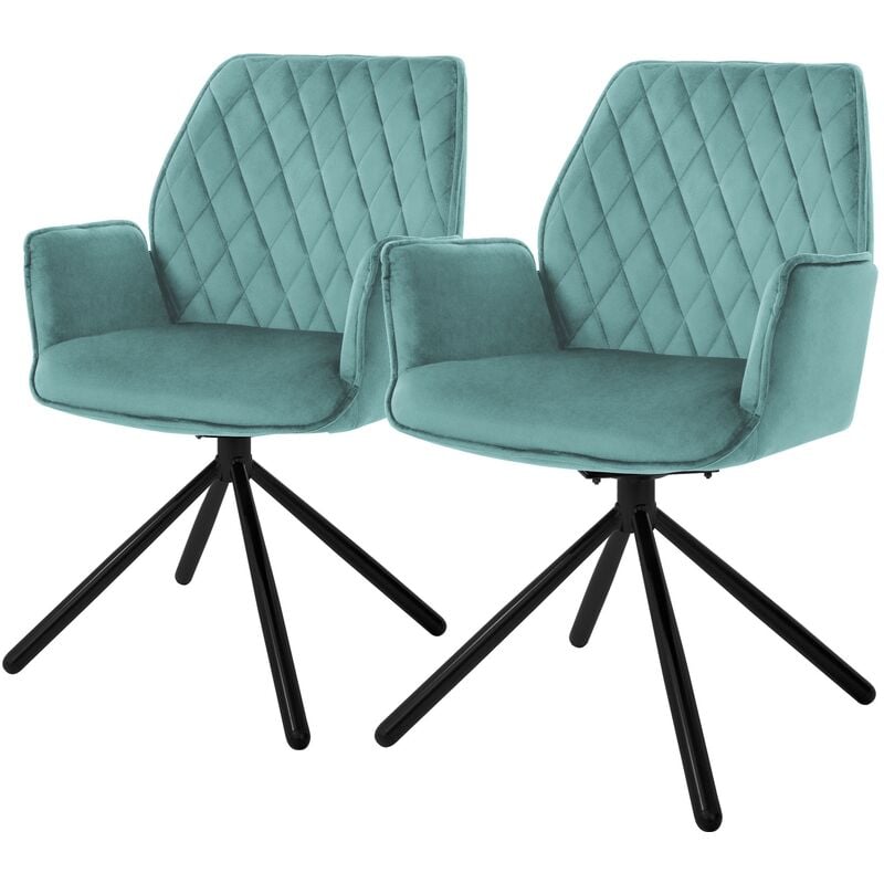 2x Chaise de Salle à Manger Vert Turc, en Velours, Pivotante, avec Accoudoirs et Dossier, Assise Rembourrée, Pieds Métalliques, Fauteuil