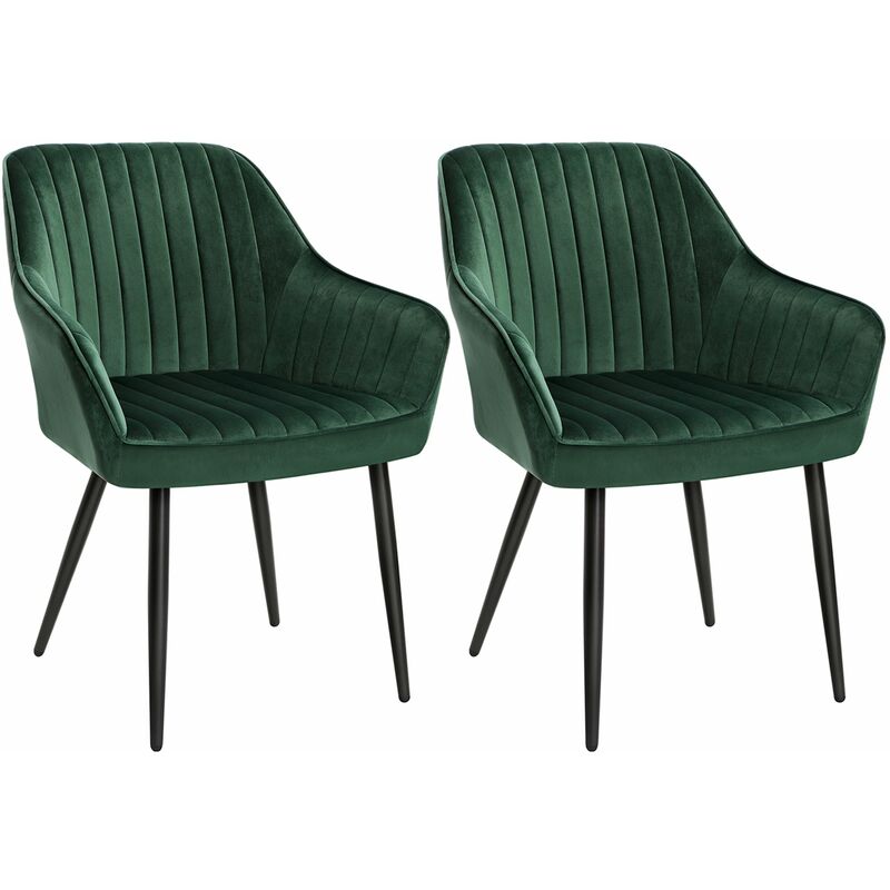 Chaise Salle à Manger, Fauteuil en Velours, Rembourrée, avec Accoudoirs, Charge Max. 120 kg, Pieds en Métal, pour Salle à Manger, Vert et Noir