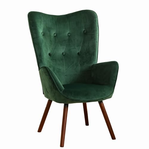 39F FURNITURE DREAM Fauteuil rétro scandinave pour Salon, Salle à Manger, Bureau avec revêtement en Velours, accoudoirs rembourrés et Pieds en Bois Massif, Vert, 68 x 73 x 106 cm