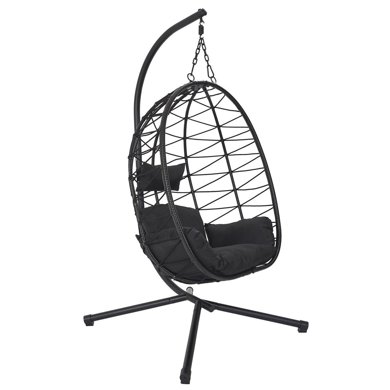 tectake® Fauteuil Oeuf Suspendu Chaise Balancoire Cocooning Pliable, Confortable & Résistant, Fauteuil Relax avec Structure en Acier, Coussin Épais & Housse de Protection