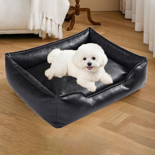 WPJBDS Canapé-Lit pour Animaux De Compagnie en Cuir Souple, Fauteuil-Lit pour Chiens De Petite Et Moyenne Taille, Meubles pour Chiots Et Chats avec Revêtement en Cuir PU Et Coussin Amovible,Noir,S