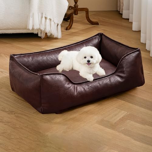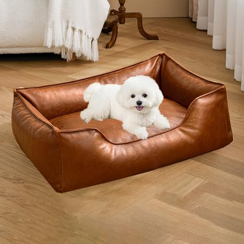 WPJBDS Canapé-Lit pour Animaux De Compagnie en Cuir Souple, Fauteuil-Lit pour Chiens De Petite Et Moyenne Taille, Meubles pour Chiots Et Chats avec Revêtement en Cuir PU Et Coussin Amovible,Marron,M