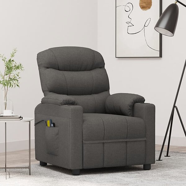 vidaXL Massagefåtölj med uppresningshjälp mörkgrå tyg 3126029