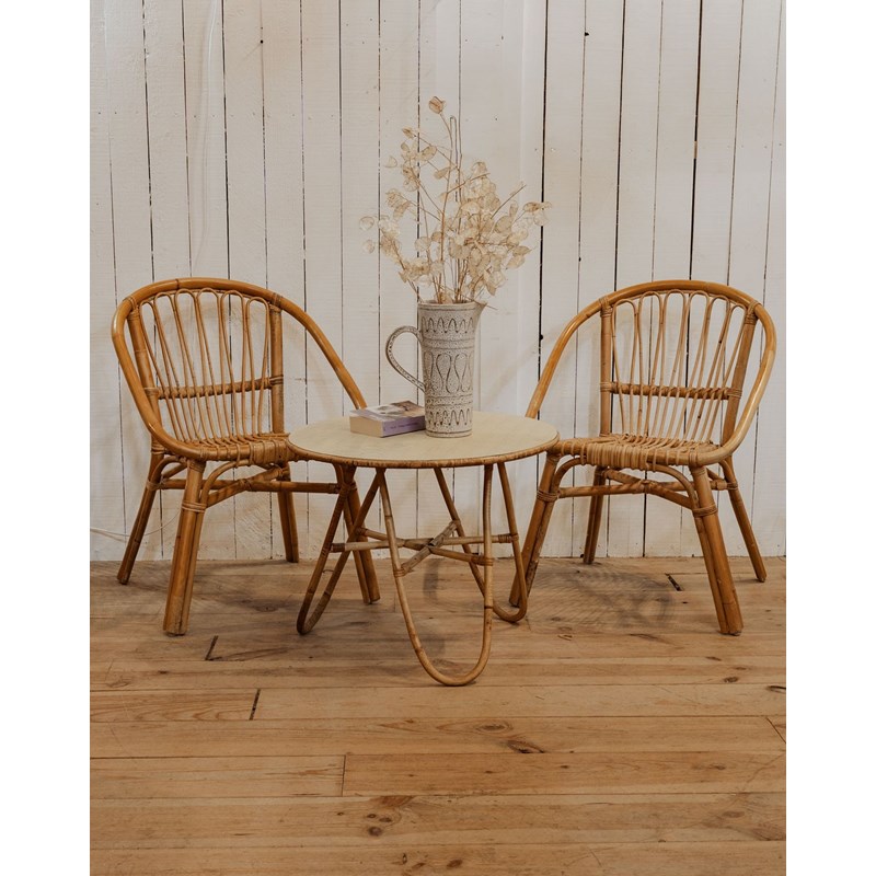 Set 3 pièces, fauteuils à bascule en rotin avec 2 fauteuils et 1 table basse,pour terrasse et balcon