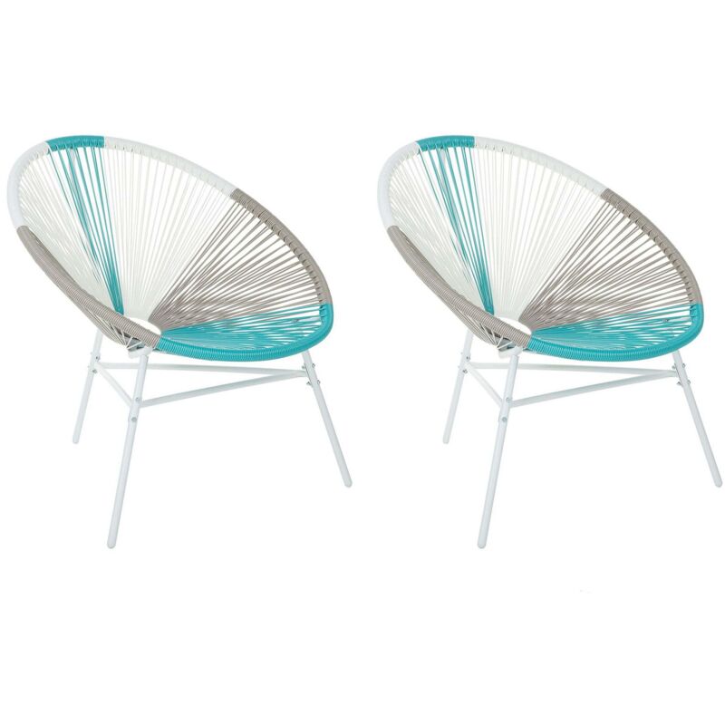 Set 2 Chaises Fauteuils Spaghetti en Rotin Bleu Blanc et Acier Design Tendance pour Chambre Salon Terrasse ou Jardin Moderne et Industriel Beliani
