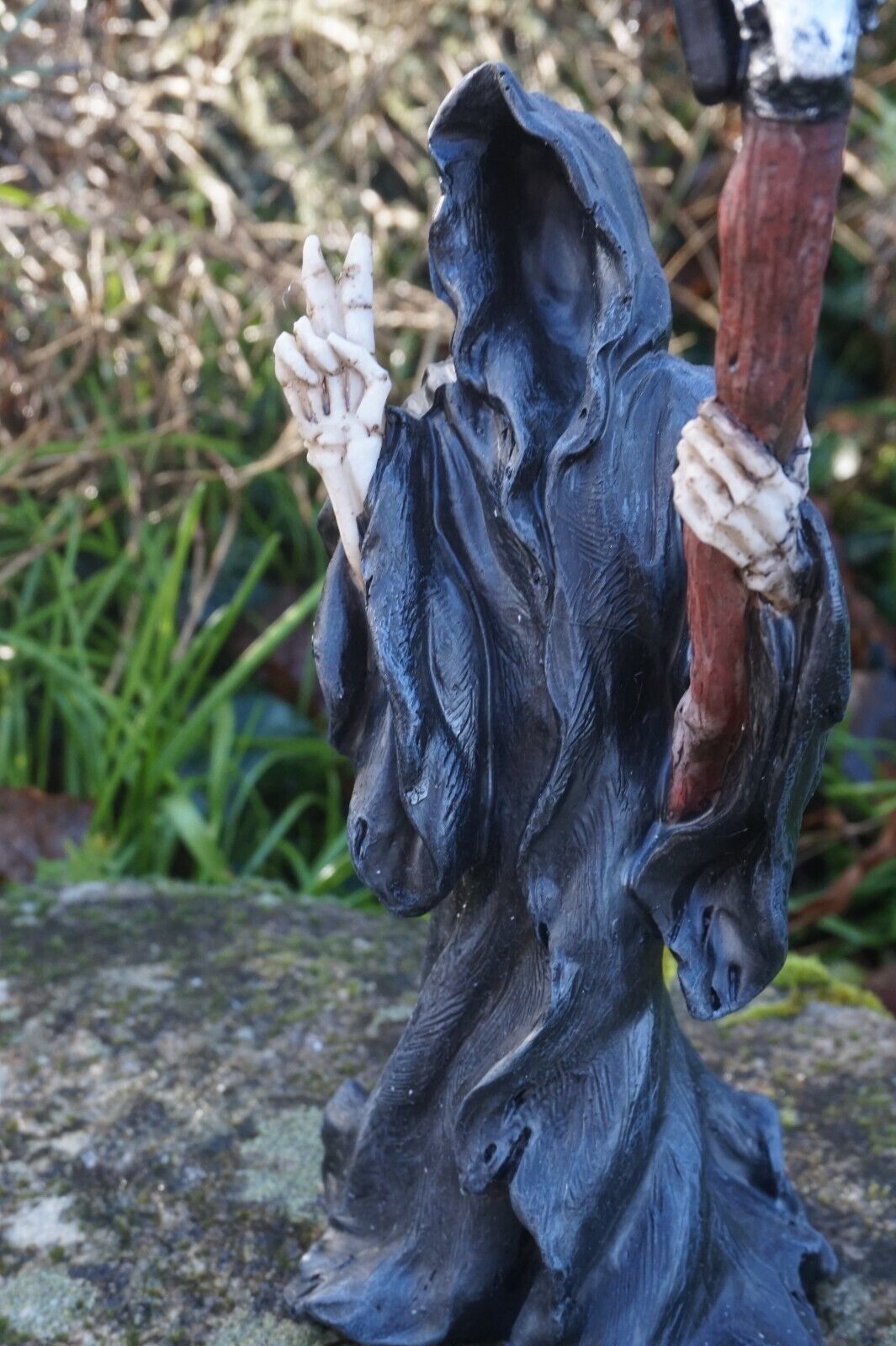 Statue de support émotionnel Grim Reaper, figurine de faucheuse, soutien émotionnel, statue de faucheuse avec faux, décor gothique pour étagère ou bureau, pour décoration d'Halloween ou chat mystère