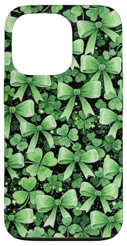 Faux Motif de Coquette avec nœud Vert, trèfle Porte-Bonheur Coque pour iPhone 13 Pro