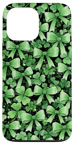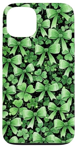 Faux Motif de Coquette avec nœud Vert, trèfle Porte-Bonheur Coque pour iPhone 13 Pro Max
