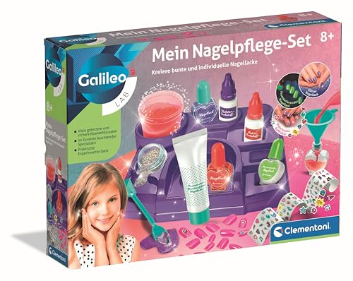 Clementoni Galileo Lab 59442 Kit de Soin des Ongles pour Enfants à partir de 8 Ans avec Couleurs, Paillettes, Faux Ongles adhésifs et Accessoires de Nail Art