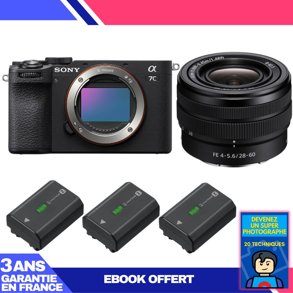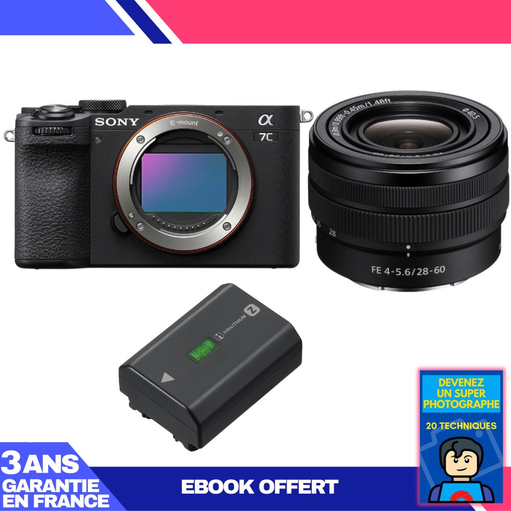 Boitier Sony A7C II Noir + FE 28-60mm f/4-5.6 + 3 Sony NP-FZ100 + Ebook 'Devenez Un Super Photographe