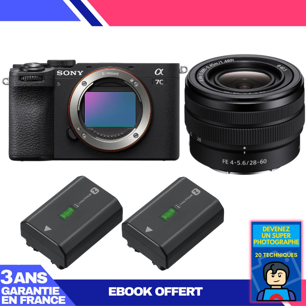 Boitier Sony A7C II Noir + FE 28-60mm f/4-5.6 + 2 Sony NP-FZ100 + Ebook 'Devenez Un Super Photographe