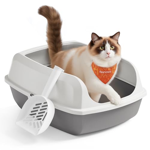 Feandrea Bac à Litière pour Chat, Parois Hautes, XXL, Ouvert sur Le Dessus, avec Pelle, pour Chatons et Grands Chats, Blanc Nuage PPT010W101