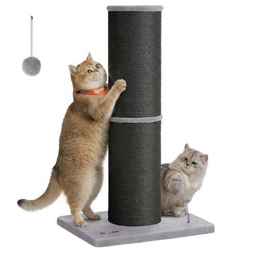 Feandrea Arbre à Chat XXL, 85 cm de Haut, Tronc de 17 cm d'Épaisseur, Poteau à Griffer Adapté aux Grands Chats comme Le Maine Coon, en Sisal, avec Balle, Clochette, Gris Tourterelle PCA042G01