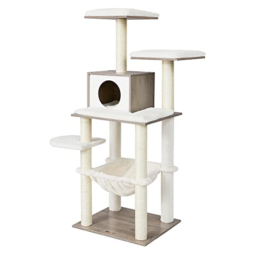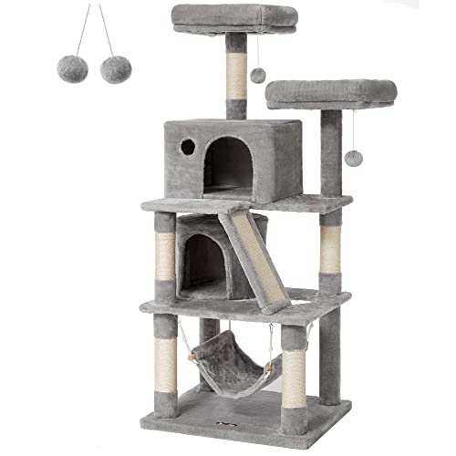 FEANDREA Arbre à Chat Gris Clair 141cm, XXL, Hamac, Niche, Stable, Sisal