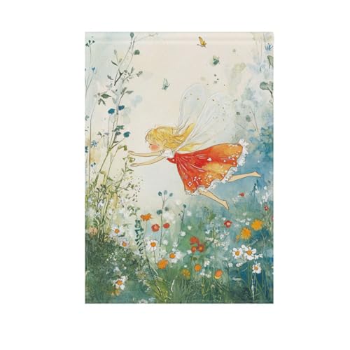 Foiosoh Drapeau de jardin fée volante et pays des merveilles - 30,5 x 45,7 cm - Côtés robustes - Pour extérieur, cour, maison, petits vacances, pelouse, patio