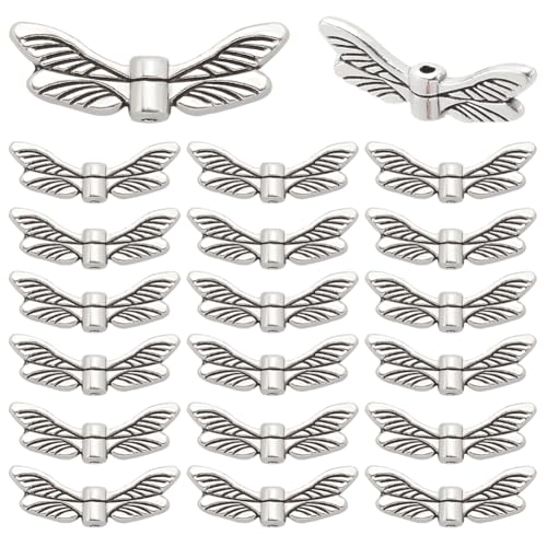 SOFPLATE 1 boîte de 200 pièces de Perles d'ailes en Métal Argenté en Alliage de Style Tibétain Fée Vintage Ange Papillon Aile Volante Perle D'Espacement en Vrac pour la Fabrication de Bijoux Colliers