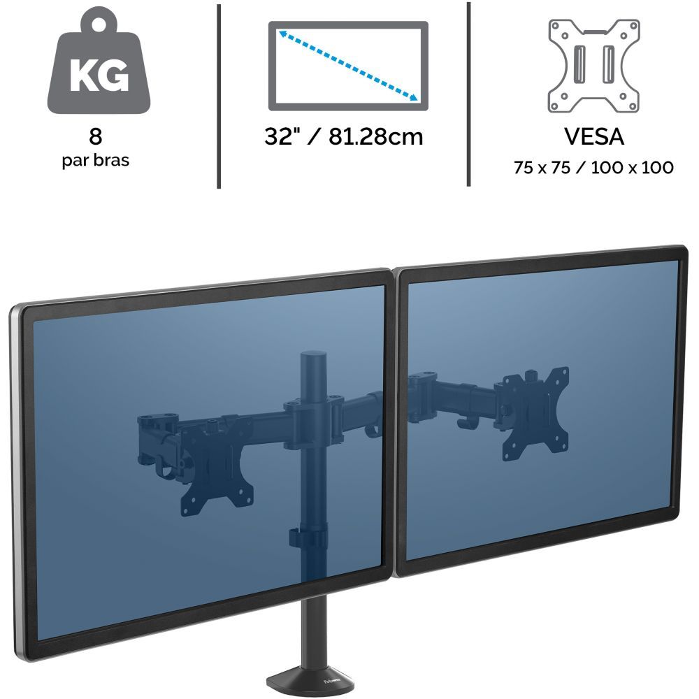 Support écran PC FELLOWES Support Double Horizontal sur pied