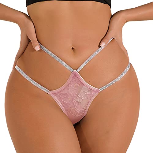 String Femme Sexy, Culotte Dentelle Femme Transparente,Culottes, Shorties et Strings Femme Stretch T-Back Taille Haute Culottes sous-Vêtement Brillant Paillettes Underwear Saint-Valentin Lingerie