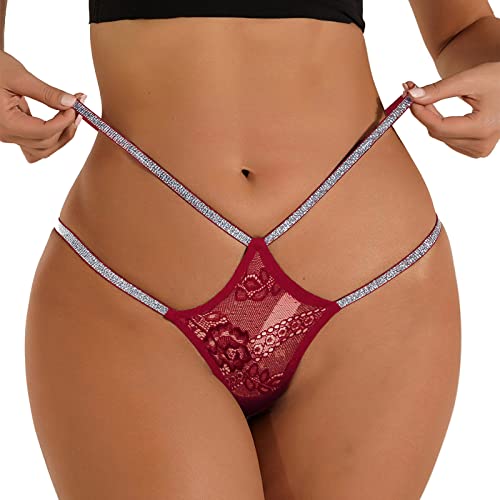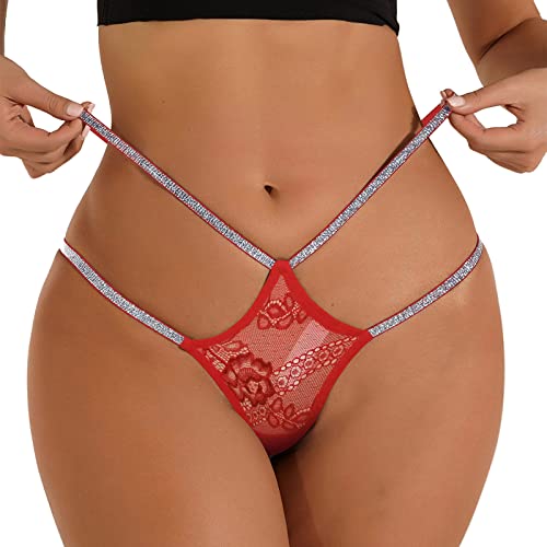 String Femme Sexy- Culotte Dentelle Femme Transparente,Culottes, Shorties et Strings Stretch T-Back Taille Haute Culottes sous-Vêtement Pas Cher Paillettes Underwear Saint-Valentin Lingerie