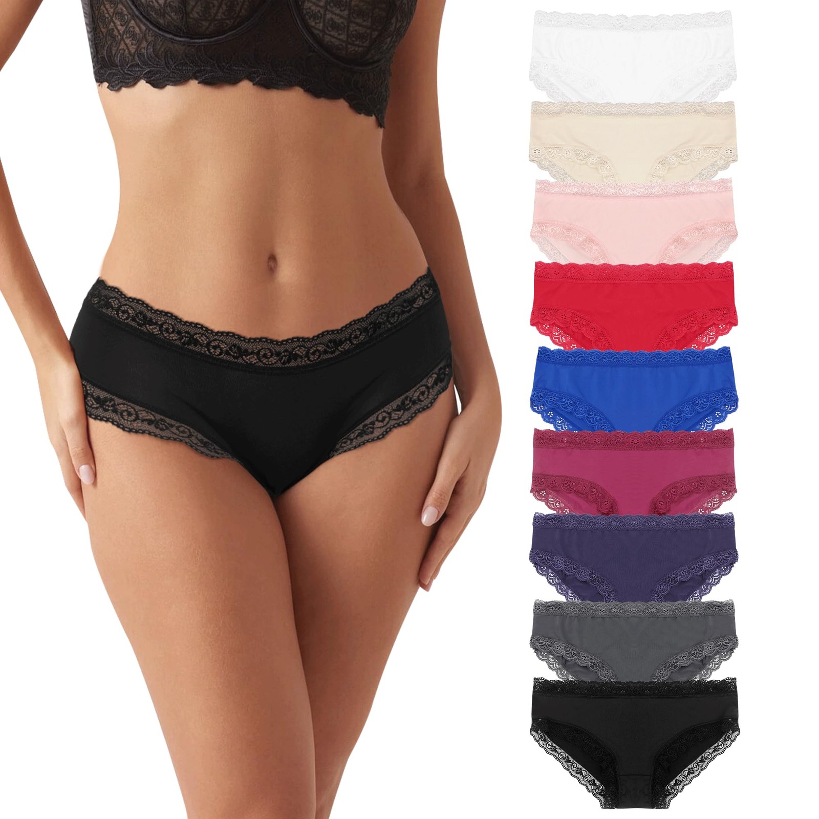 Lot de 10 Culotte Femme Sexy- Culottes et Slips Dentelle-Culotte Invisible Creux Grande Taille Solide sous-Vêtements Slips Lace Respirant Classique de Mode élégant Lingerie sans Couture