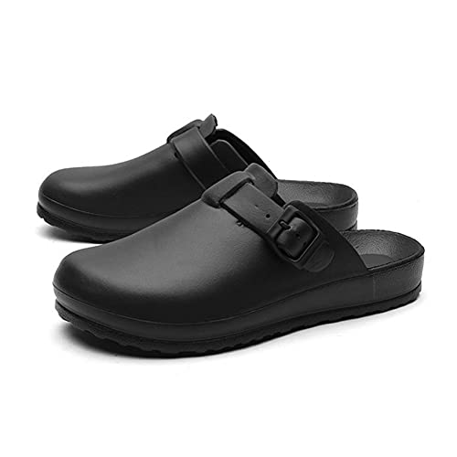 ERLINGO Sabots de jardin pour homme et femme - Chaussures plates et confortables - Dos nu - Pour la cuisine, le jardin - Coupe large - Noir - Noir , 42 EU