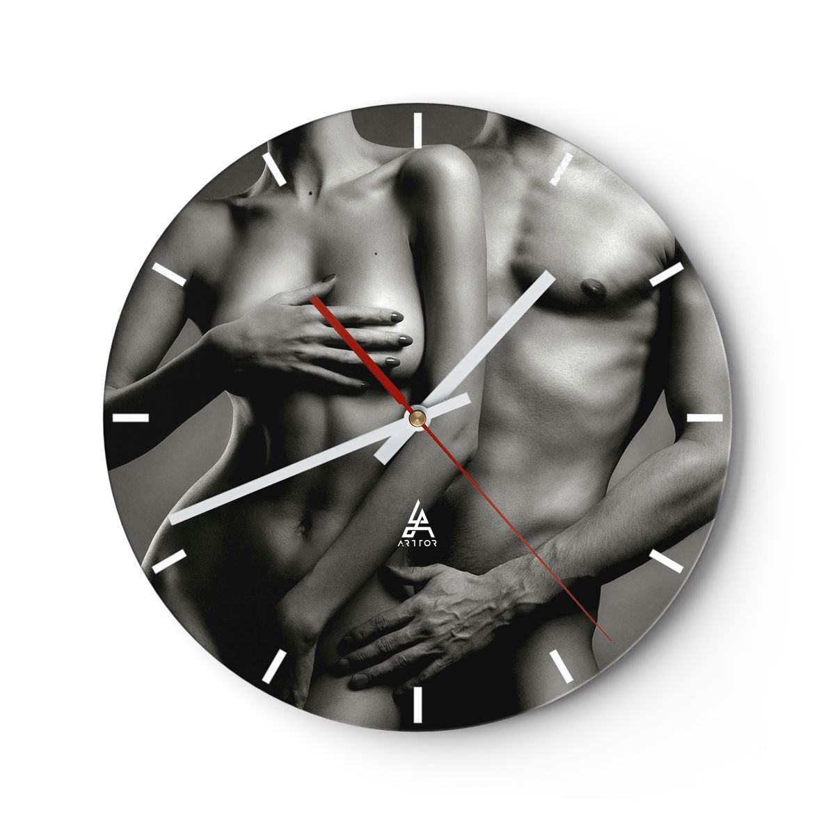 Horloge murale en verre 40x40cm Silencieuse Femme Homme Nu Couple Wall Clock