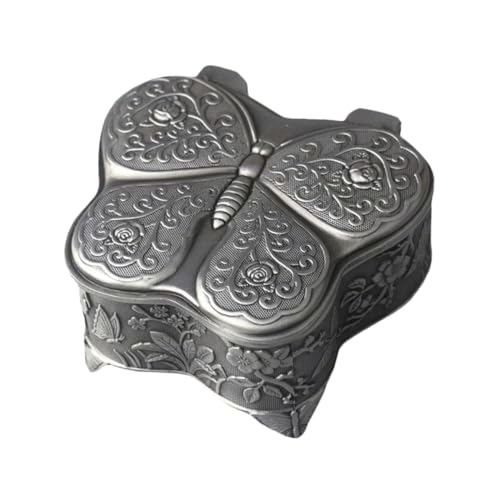 HEALEEP Petite Boîte à Bijoux en Alliage Argenté à Motifs en Relief, Mini Coffret de Voyage Compact pour Boucles D’oreilles et Colliers, Étui Léger et Portable pour Femme, Rangement