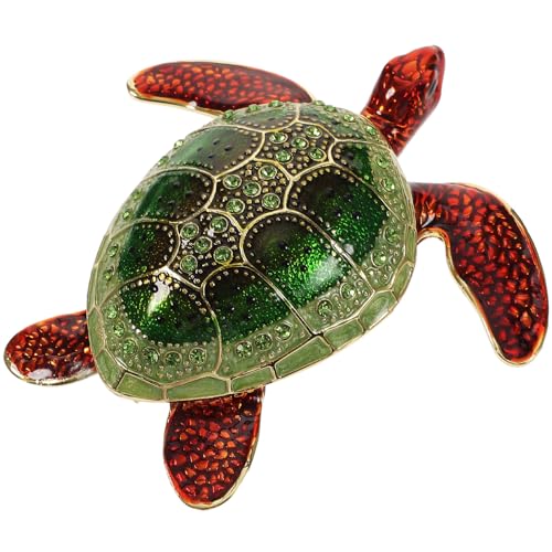 Amosfun Boîte à Bijoux en Alliage Émaillé Verte, Mini Tortue Décorative Magnétique, Organisateur Compact pour Bagues et Bracelets, Coffret Rangement Bijoux Femme, Décoration Bureau
