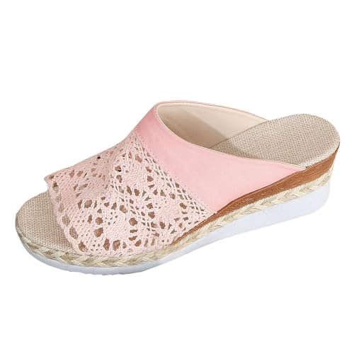 Chaussures Sexy Femme 44 Talon oblique Creux Pantoufles Décontractées Chaussures à Semelle oblique Sandales Pieds Nus Chaussures Femme Hiver, Rose, 36 EU