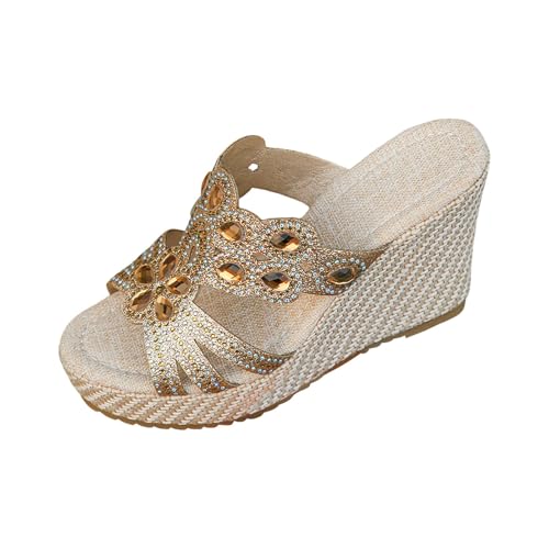 Générique Sandale Femme Sandales De Trekking Pieds Nus Avec Sangle Réglable Sandales Compensées Pour Femme D'été Bohème Tendance Strass Été Habillées Décontractées À Enfiler Confortables Et Sexy