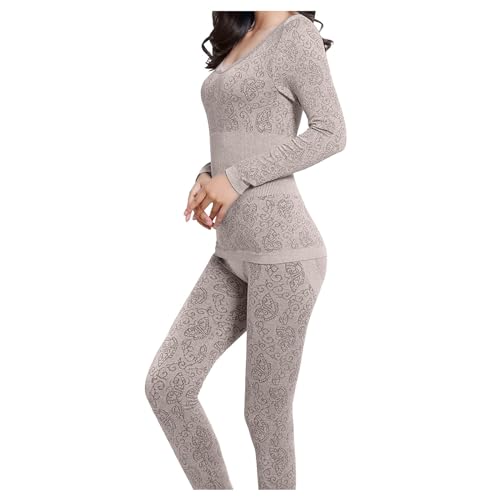 sous Vetement Thermique Grand Froid Femme, Vetement Chaud Hiver Ensemble DéTente en Dentelle Sexy sans Couture AntibactéRien Coupe AjustéE Imprimé ÉLastiques