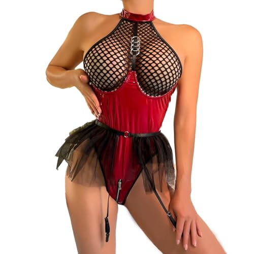 Body Femme Sexy SM Érotique Cuir Tenue, Body Latex Hot, Lingerie Pute Ensemble Wetlook, Clubwear Dos Nu Sexy Cosplay Catsuit sous Vetement