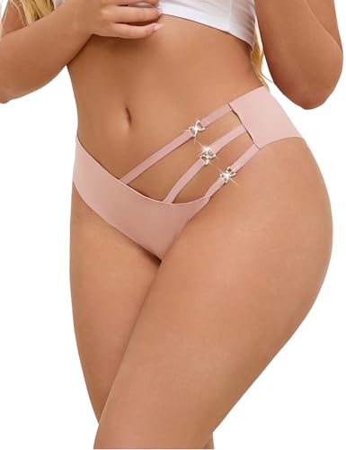 comeondear String sans Couture Femme Invisible Tanga Chic Grande Taille Culotte Taille Basse(Rose,L)