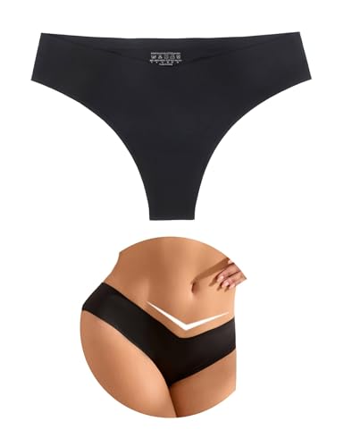 comeondear String sans Couture Femme Invisible Tanga Chic Grande Taille Culotte Taille Basse(Noir,S)