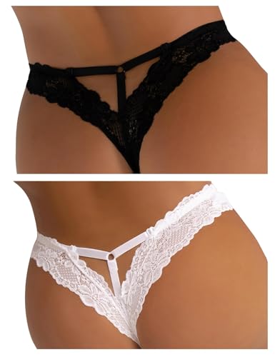 ohyeahlady String Femme Chic Hot Ficelle Dentelle Tanga Invisible Femme sans Couture Coton Culotte Chic Grande Taille Micro String sous Vetements Feminins Dessous Ronde Underwear Slips S,Noir+Blanc