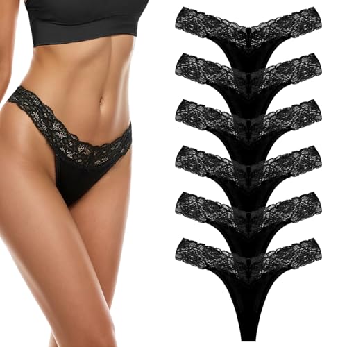 HAGOT Lot de 6 String Femme, String Coton Femme Dentelle, Sexy Tanga Femmes, Invisible Slips Taille Basse