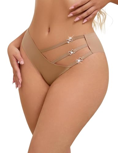comeondear String sans Couture Femme Invisible Tanga Chic Grande Taille Culotte Taille Basse(Marron,S)