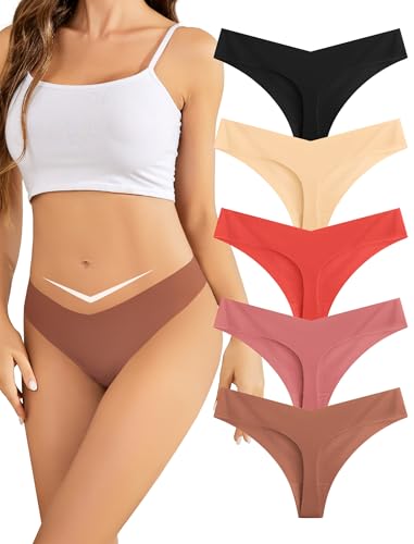 VOENXE Culotte Femme sans Coutures, Invisible String Tanga Taille Basse, Sexy Chic Slip Microfibre Shorty, sous-VêTements Seamless Thong Underwear Women,Lot De 5,XL