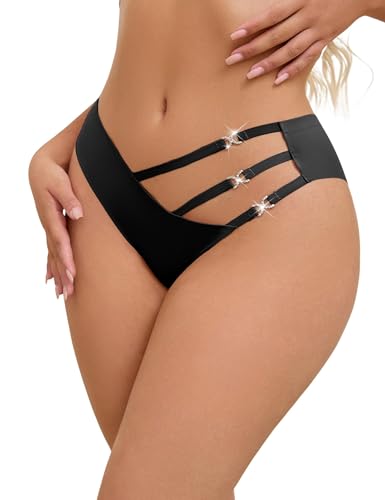 ohyeahlady Tanga sans Couture Sexy Femme Grande Taille Bikini Slip Brésilien Dentelle Invisible sous Vêtements Culotte Hipster Soie Glacée String Chic Shorty Coton Panties Underwear(XS-S,Noir)