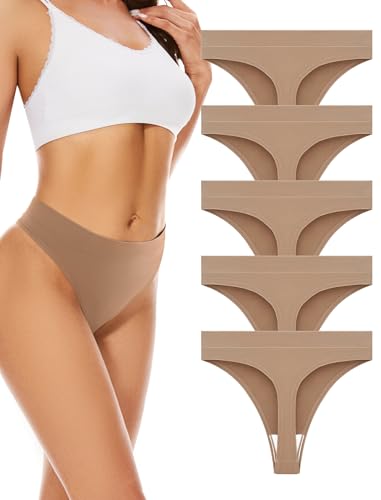 VOENXE String Tanga sans Couture Femme,Strings Taille Haute pour Invisible,Tanga Haut Sport Femme Sexy Chic,sous-VêTements Élastique Confortable Thong,Seamless Underwear Women Panties,Lot De 5