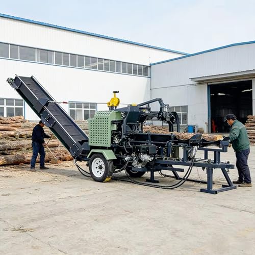 Processeur de bois de chauffage mobile 20 à 40 tonnes Fendeuse hydraulique automatique de bois de coupe et de fendage du bois avec convoyeur Convient pour les cours commerciales et les applications