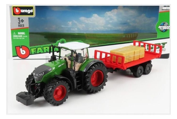 1:50 BURAGO Fendt Vario 1050 Tractor With Trailer 2016 Green Red BU31674