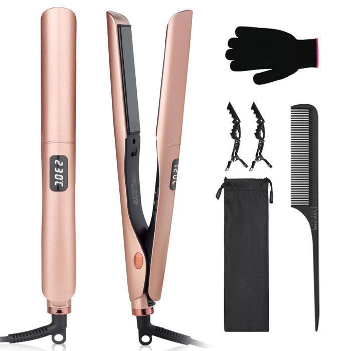 Lisseur Chevux Professionnel Fer a Lisser et Boucler 2 EN 1 7 Réglable de Température Plaquesen en Céramique Cheveux Champagne