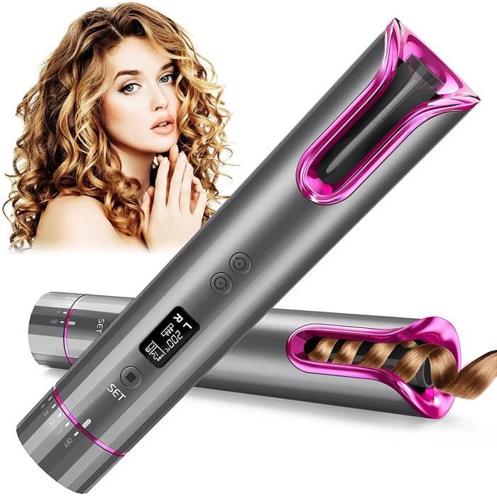 Fer à Boucler Automatique Boucleur a Cheveux Portable Fer à Friser Sans Fil Rechargeable USB 6 Température/Minuterie