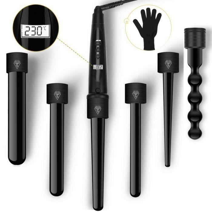 Fer à Boucler Boucleur 5 en 1 Fer à Friser Céramique 80-230℃ Température Réglable Kit Boucleur a Cheveux avec Écran LCD et Gant Noir