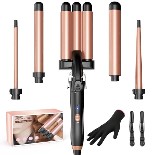 Boucleur 3 Tete Fer a Boucler-5 in 1 Boucleur a Cheveux en Céramique Fer à Friser 2 Températures, Fer a Onduler Chauffage Rapide pour Cheveux Longs, Courts