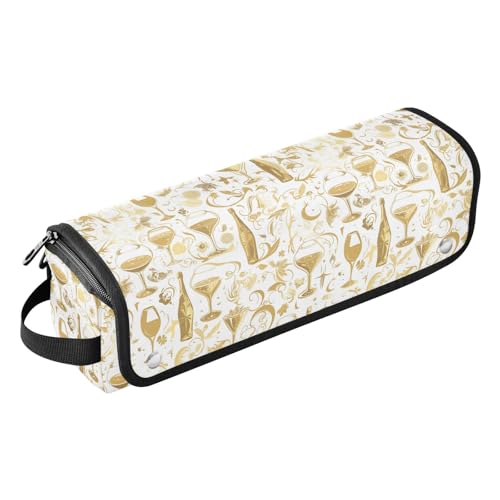 Golden Cocktail Lemon Étui de voyage 2 en 1 pour fer à friser avec coussinet résistant à la chaleur étanche pour fer à friser, fer à lisser, sèche-cheveux plat, essentiel de voyage portable