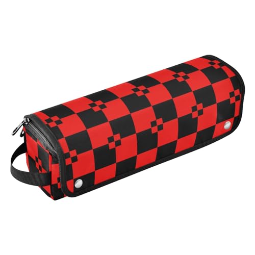 miaozhen Organiseur 2 en 1 pour outils de cheveux et tapis résistant à la chaleur, sac de voyage pour fer à friser, fer à lisser, sèche-cheveux plat, sac de voyage à carreaux de buffle rouge et noir